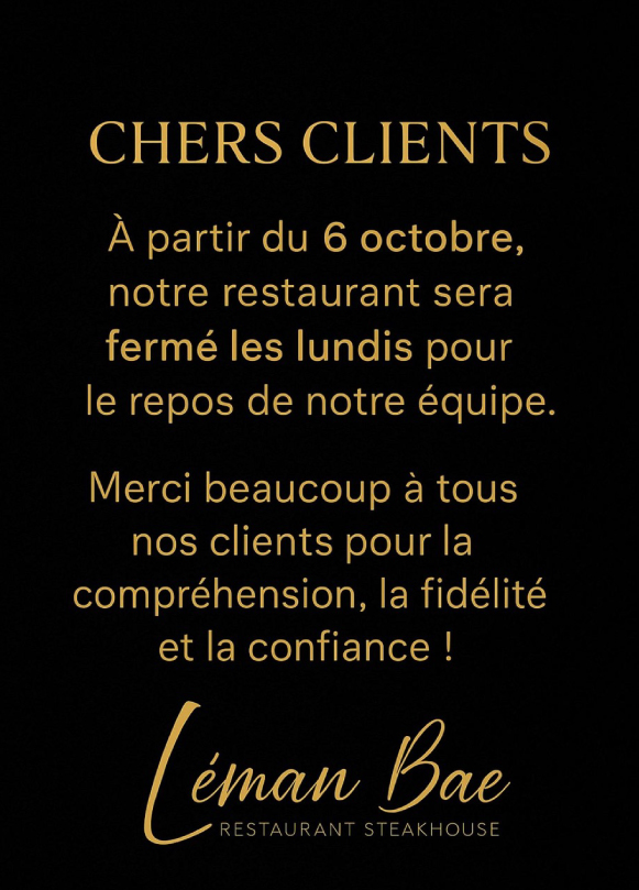 Leman Bae, Restaurant Steakhouse votre petit coup de cœur dans la Riviera. Restaurant familiale, à deux pas du château de chillon avec une vue imprenable sur le lac Leman vous propose des plats préparés avec des produits frais, de qualité supérieure, cuisinés avec plein d’amour par nos chefs. Dès les viandes exceptionnelles comme le bœuf Angus Suisse, au entrecôte wagyu, au bœuf et poulet HALAL, jusqu’aux seiches croustillants et les filets de perche, accompagnés de frites maison, en passant par une vaste gamme de vins sélectionnés, locaux et du monde entier. Notre équipe est ravie de vous faire voyager au paradis à travers des vôtres papilles gustatives.